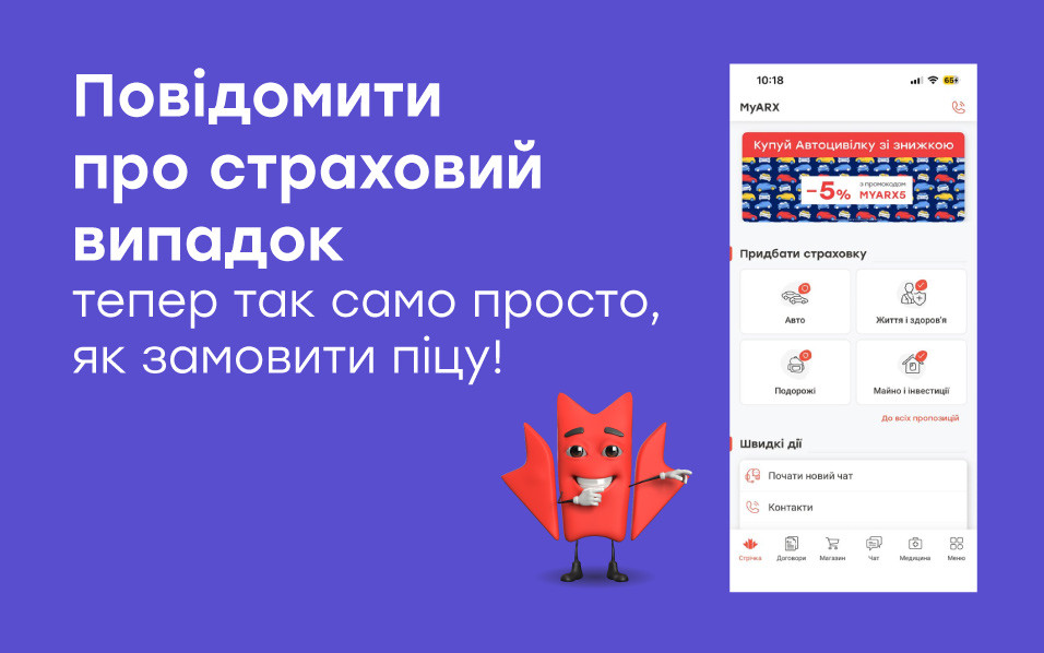 Ми оновили застосунок MyARX, щоб у стресовій ситуації ви не витрачали час на дзвінки та очікування «на лінії». Тепер власники полісів КАСКО та Автоцивілка можуть зафіксувати подію просто у чаті.